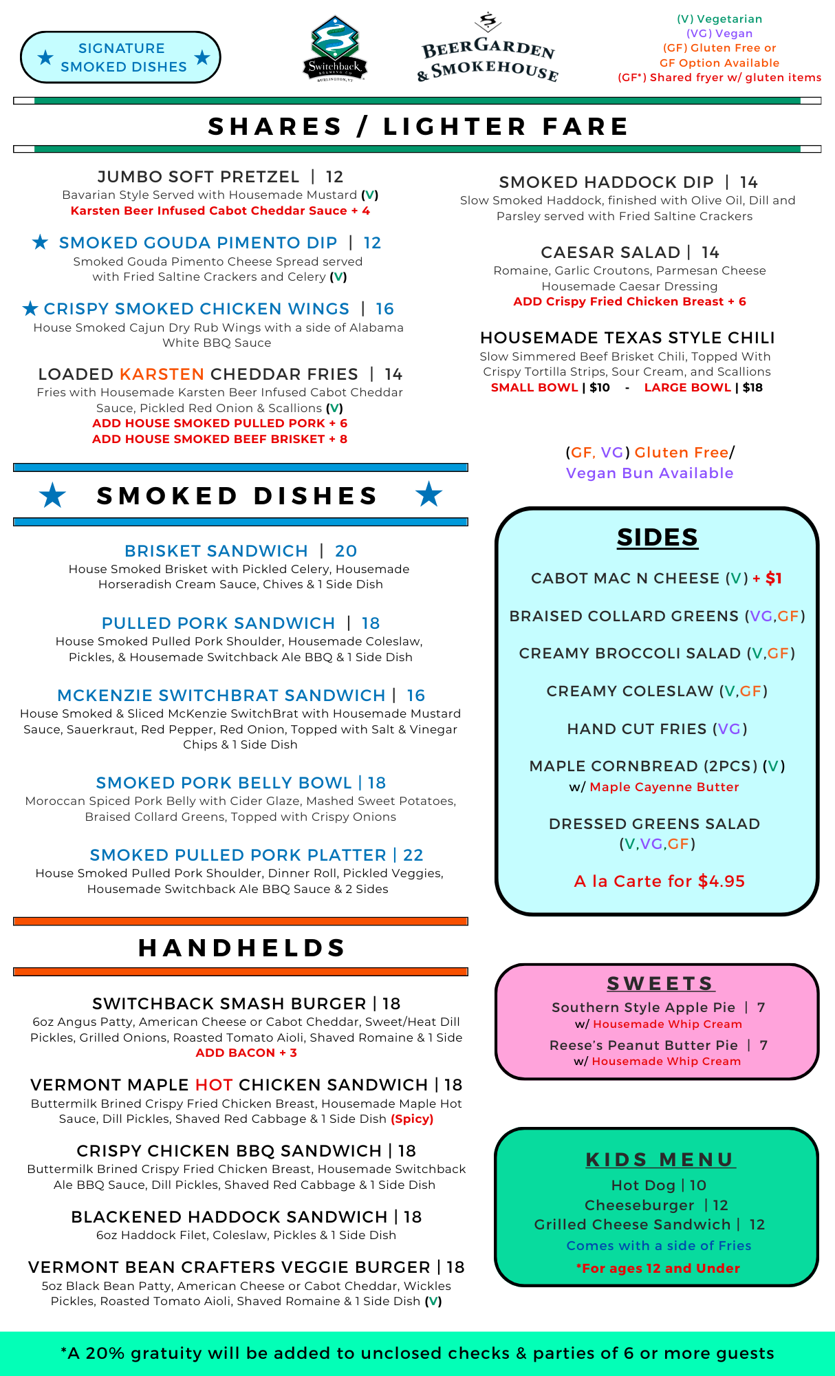 WEDNESDAYS: $5 Switchback Ale Pints, $12 Burger & Brew, $12 Pork & Pint